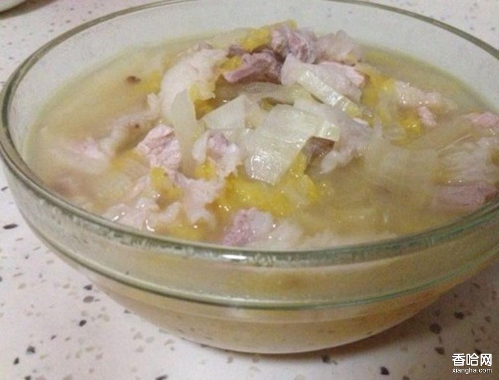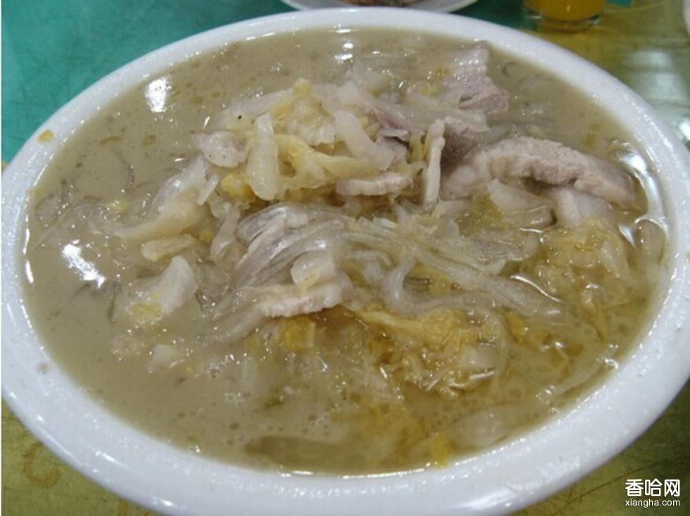 (2).把煮肉湯燒開,撇去浮沫,下酸菜絲、海米、白肉片、精鹽,燒開三分鐘后,放入細粉、味素,用慢火燉幾分鐘即可。食用時蘸腐乳、韭花醬。