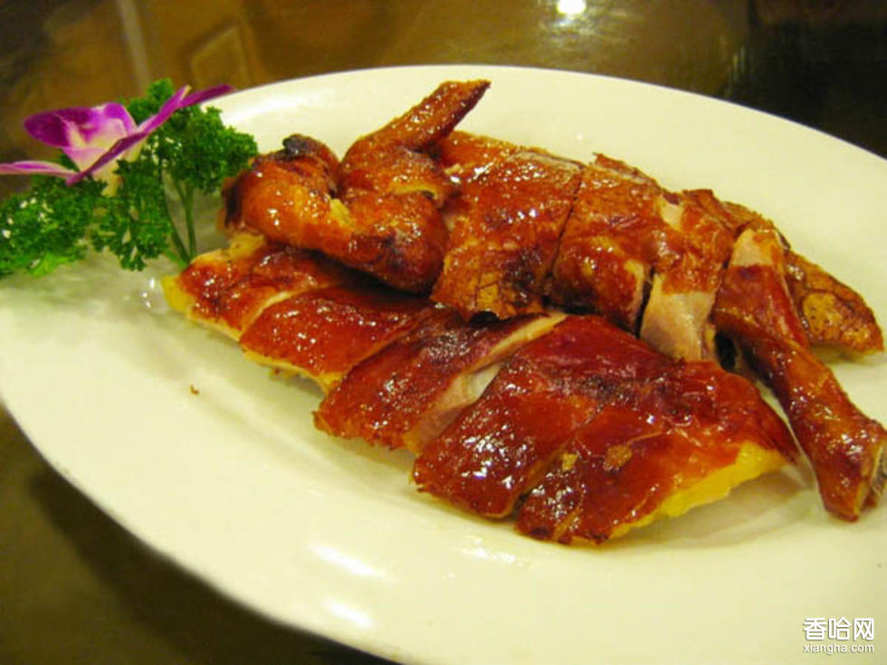 5.熏制:將煮熟的雞撈出,晾涼后即可熏制。熏烤時(shí),熏鍋的溫度為120℃左右,白糖分兩次放入鍋底,每7.5千克熟雞,每次放白糖50克。將雞放鐵箅子上,加鍋蓋后每次熏烤約30秒鐘。熏好的雞,雞身外涂香油或熟豆油后即可食用。