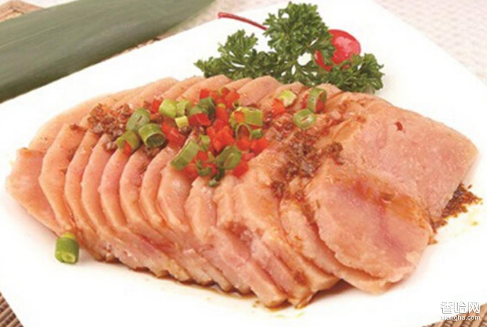 制作方法:1. 將豬肉拔盡豬毛,用明火燎皮,除出絨毛,刮洗干凈,改刀成大方塊;2. 老湯2500毫升加鹽、加水2500毫升、加香料(丁香、良姜、白芷等等),倒入碼好肉塊的缸內(nèi),一般腌泡7天;3. 根據(jù)肉質(zhì)和季節(jié)的不同,泡制時(shí)間可縮短和延長;4. 將腌過的肉塊和清水煮至七成爛,撈出瀝干水分;5. 用白糖、鋸末熏成金黃色,切片上桌。