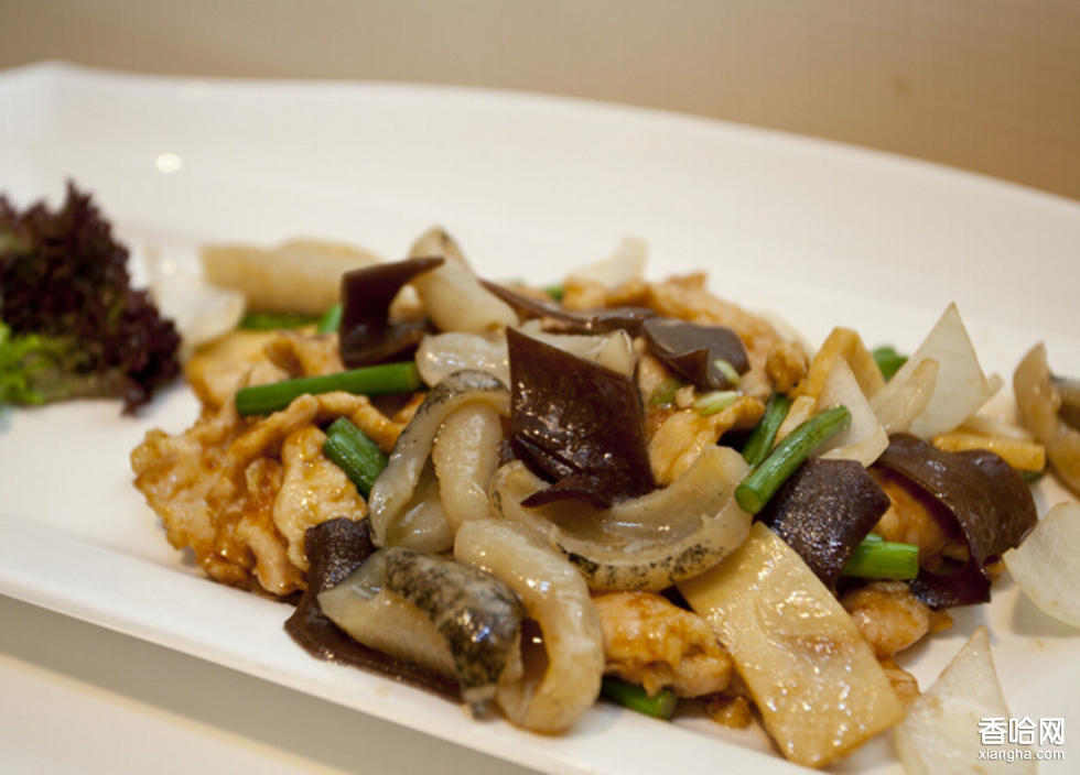 烹制方法:⒈ 扁擔(dān)肉(里脊肉)去凈薄膜、白筋和脂油,橫放在砧板上;⒉ 用平刀下片法把原料翻轉(zhuǎn)著片成0.33 厘米厚的長帶片;⒊ 然后平放在砧板上,再直刀斜切成長6.6厘米,寬4 厘米的斜方形片;⒋ 冬筍削皮,洗凈,切成與肉同樣大的片;⒌ 黃瓜洗凈,切成與肉同樣大的片;⒍ 水發(fā)木耳摘蒂,洗凈,大片的切?。虎?蔥去根須,洗凈,切青豆大的片;⒏ 姜去皮切姜米,蒜瓣去蒂切薄片;⒐ 把切好的肉片放碗中,加黃醬、花椒、醬油、鹽拌勻腌漬半小時(shí);⒑ 冬筍片焯一下,清水過涼放小碗中;⒒ 冬筍碗中加入木耳和切好的黃瓜片、雞湯50毫升、黃酒、味精、醬油、濕淀粉調(diào)成芡汁;⒓ 炒鍋上旺火,放入豬油燒五成熱時(shí)下入浸好的肉片,迅速用筷子撥散,⒔ 炒鍋再放回火加入豬油,放入蔥片、姜末、蒜片煸出香味,扣入過好油的肉片,先用醋烹一下再倒入調(diào)好的芡汁,顛翻炒勻,淋豬油即可出鍋。