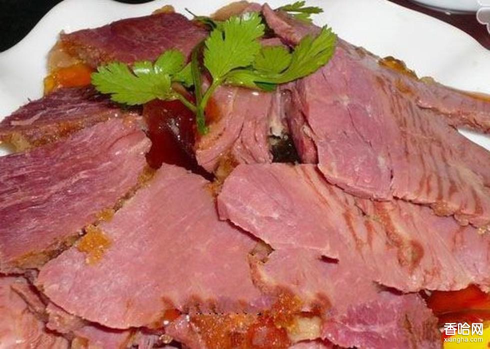 辛集咸驢肉,色紅味美,軟而不爛,香而不膩,鮮而不腥。每天下午先把要煮的驢肉放在冷水里浸泡,每小時(shí)換一次水,直至水清肉白后放入煮鍋,浸煮十分鐘左右,再換水加花椒、大料、小茴香三味調(diào)料大火烹煮,待肉熟后撤火,用石塊兒壓好鍋蓋,然后慢火悶煮一夜,第二天早晨將煮熟的咸驢肉撈出,食時(shí)順肉切條,再切成片后即可食用。