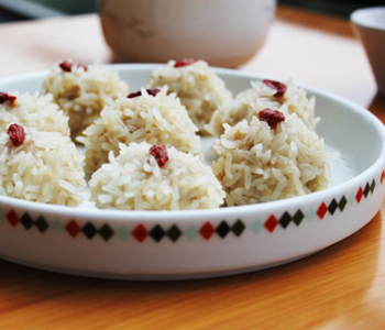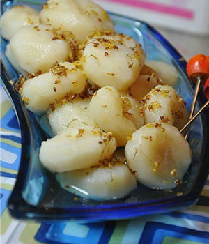 4、把餡兒團(tuán)成一個(gè)個(gè)小丸子。