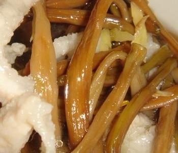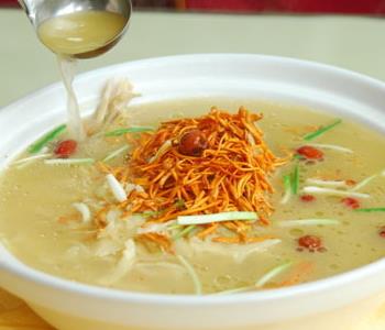 做法:首先要把黃花菜洗凈在沸水中焯燙,再放到冷水中浸泡1到2個(gè)小時(shí),擠干黃花菜中的水分。把香菇泡發(fā)后擠去其中的水分切成絲狀,把豬瘦肉同樣切成絲再用少許鹽、料酒、淀粉拌勻上漿待用。在砂鍋中放入1000毫升的清湯,然后用中火把湯煮沸,撒上少許鹽,把豬肉絲倒到鍋里面,等鍋沸滾后,把油末撇去,再加入香菇絲煮沸滾3分鐘后,最后加入黃花菜,淋上麻油即可出鍋。