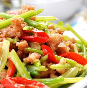 食材準(zhǔn)備:西芹、豬肉、蔥、姜、調(diào)味品