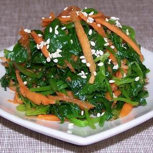 材料:嫩的芹菜葉、辣椒油、香油、鹽、蒜。
