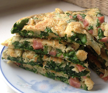 而雞蛋的營養(yǎng),相信大家也都耳熟能詳了,雞蛋含豐富的優(yōu)質(zhì)蛋白,每百克雞蛋含12.7克蛋白質(zhì),含脂肪11.6克,大多集中在蛋黃中,以不飽和脂肪酸為多,脂肪呈乳融狀,很容易被人體吸收。雞蛋還有其它重要的微營養(yǎng)素,如鉀、鈉、鎂、磷,特別是蛋黃中的鐵質(zhì)達7毫克/100克。所以,這么有營養(yǎng)的兩種食材結(jié)合,芹菜葉子餅就是一道營養(yǎng)價值十分高的佳肴喔!芹菜性涼,而雞蛋偏溫,二者中和過后,營養(yǎng)美味一級棒喔!這里再給大家一個小貼士:芹菜有降血壓作用,故血壓偏低者慎用喔;另打算生育的男性應注意適量少食。