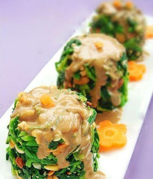 原料:菠菜、花生仁、腰果、大蒜、鹽、香油;