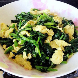 這樣,一道噴香可口,色澤明艷的菠菜炒雞蛋就做好了。