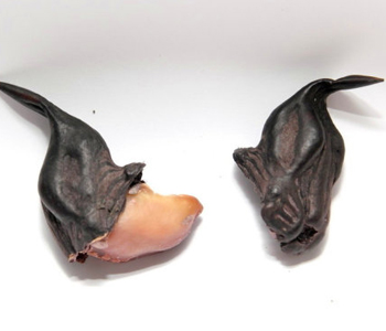 2、將已變色的地菱角放入清水中浸漂4—5天,用木棒攪動之,使菱角表皮脫落(老菱角可不脫皮),洗凈并曬干其外殼。