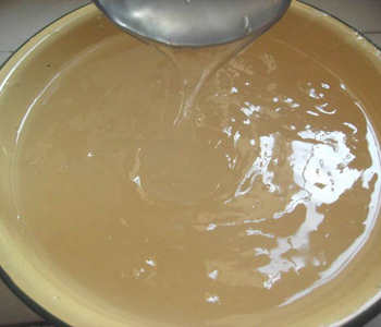 5、約經(jīng)24小時泡,即可在石磨或鋼磨上磨成漿汁,用白布濾之,過濾后的渣再磨一次,并進行過濾,以充分提取淀粉。