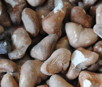 1、把采收的新鮮菱角堆放在木桶里,約7日之后,果皮呈黑色。