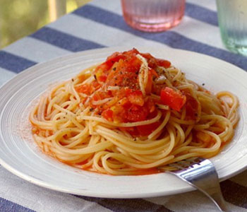 材料:意大利面、西紅柿、大蒜、黑胡椒、鹽