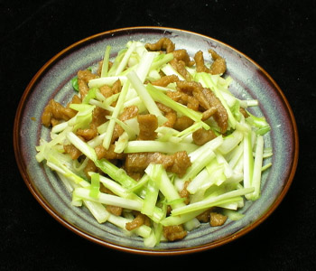 材料:韭黃300g,肉絲100g,鹽適量,料酒適量,生抽適量,淀粉適量,蔥姜末適量