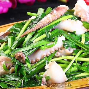 食材:魷魚(yú)、韭菜、鹽、料酒、味精、醬油、大蔥、姜、蒜。