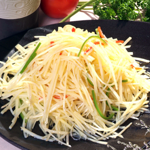 1、將土豆洗凈切成絲,隨后放入水中浸泡15分鐘;