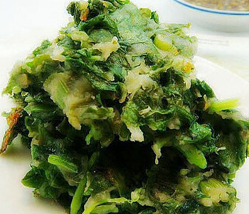 材料:莧菜、小麥面粉、蒜泥、蔥花、醋、油、鹽