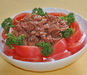 做法:1 西紅柿洗凈后放入開水中燙一下,之后去皮切片。燙過開水的西紅柿很容易就能把皮撕下并不影響外觀。
