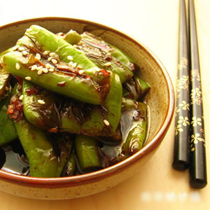 食材:尖椒、油、鹽、生抽、白糖、辣醬、醋。