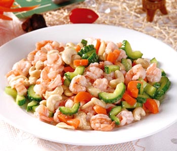 蝦仁是典型的高蛋白、低脂肪食物,易于吸收,具有補腎壯陽、健胃的功效,腰果營養(yǎng)十分豐富,香美可口,并有一定的食療作用,它可潤腸通便,潤膚美容,延緩衰老,補腎之功效。經(jīng)常食用可以提高機體抗病能力。黃瓜夏天宜多吃,以補充水分及流失的無機鹽。