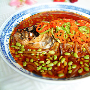 鰱魚頭的做法:毛豆燒鰱魚頭