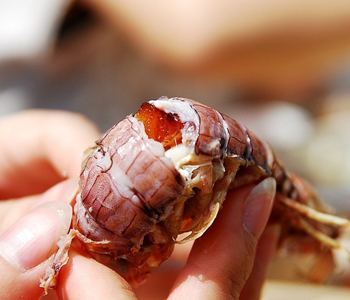 2、察色澤。新鮮蝦皮殼發(fā)亮,河蝦呈青綠色,海蝦呈青白色(雌蝦)或蛋黃色(雄蝦)。不新鮮的蝦,皮殼發(fā)暗,蝦略成紅色或灰紫色。
