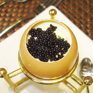 為了完整且單純地品味魚子醬的鮮美,要讓魚子醬和“蔥姜末”“洋蔥末”等雜碎的輔助香料隔離開來;各類中式醬料也是要仔細(xì)斟酌后才能與之搭配的,氣味太濃烈的一定要摒棄,若需要醬汁入味的話,西餐“打泡”的手法可以借鑒。