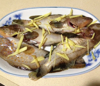 材料:小石斑魚(yú)、姜絲、蔥段、鹽、油