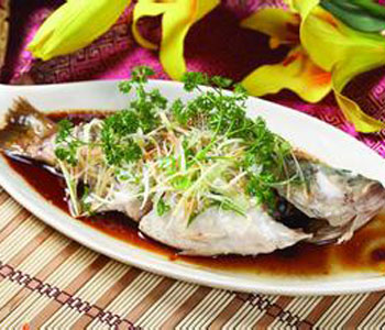 2、對于魚腥味較重的魚,可以在魚身上再放一些蔥、姜。蒸好后把表面的蔥去掉,換上新鮮的,不然黃黃的影響美觀與口感。