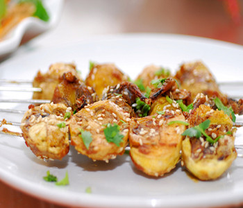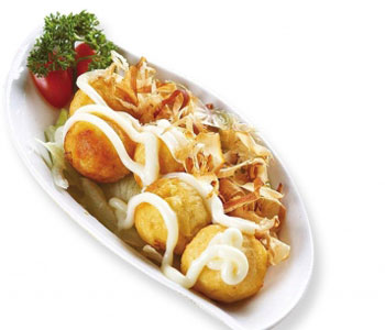 3、醬油章魚燒。在章魚燒表面涂上醬油,以名古屋一帶為多。目前最火爆的在內(nèi)地是肉松章魚燒,香甜味加秘制番茄沙司,特別適合小女孩的口味。