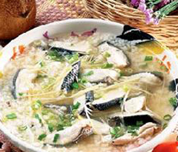 粳米100克,青魚(yú)200克,大蔥5克,姜3克,鹽4克,味精2克,植物油5克,香油2克