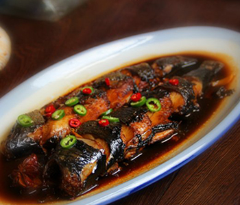 2、另用香糟和酒拌和,將魚(yú)放入糟約三小時(shí)左右,使它入味。然后取出,用冷水稍洗一下。