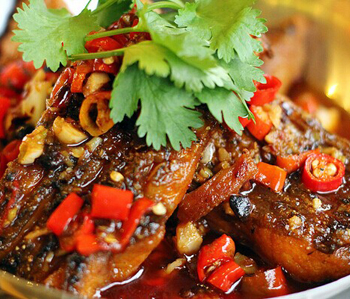 煎魚用鍋一定要刷洗干凈,坐鍋后用一塊鮮姜斷面將熱鍋擦一遍,再將油倒入,用鍋鏟攪動(dòng)使鍋壁沾遍油,熱后放魚,煎至魚皮緊縮發(fā)挺,微呈黃色即可。