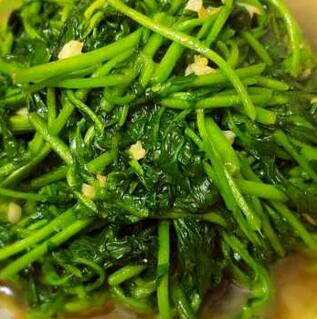 西洋菜500g 油適量 鹽適量 蒜蓉適量
