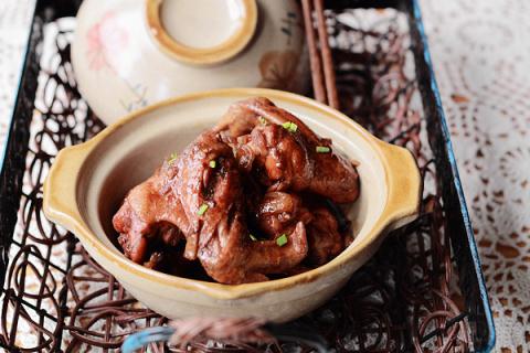 5、燉煮十來分鐘后,中途將雞翅翻個面,繼續(xù)燉煮十來分鐘,湯汁收干即可