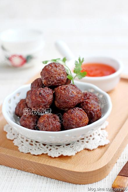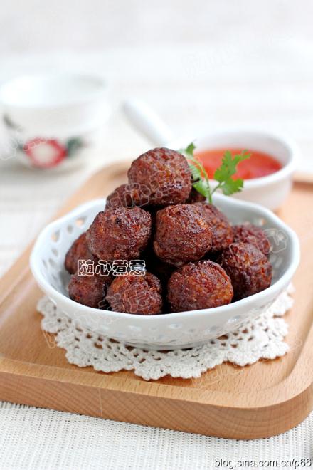 **因?yàn)榉帕死铣檎{(diào)色,所以丸子油炸后顏色比較深,成了棕紅色,如果你不喜歡顏色太深的丸子,可以不放老抽。