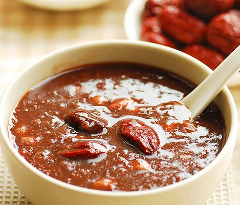 其中紅豆中富含豐富的維生素B1、維生素B2,蛋白質(zhì)與多種礦物質(zhì),常吃具有補血養(yǎng)腎和促進血液循環(huán)的功能;紅棗則一向是女人補血養(yǎng)顏的圣品,它富含維生素C、維生素P,對健全毛細(xì)血管、維持血管壁彈性,抗動脈硬化有很大的益處。紅糖對補血同樣非常有效,其中所含的葉酸、微量元素物質(zhì)可加速血液循環(huán)、增強血容量成分,刺激機體的造血功能,提高局部皮膚的營養(yǎng)、氧氣與水分供應(yīng),強化皮膚組織結(jié)構(gòu)和皮膚彈性,同時補充皮膚營養(yǎng),促進細(xì)胞再生。