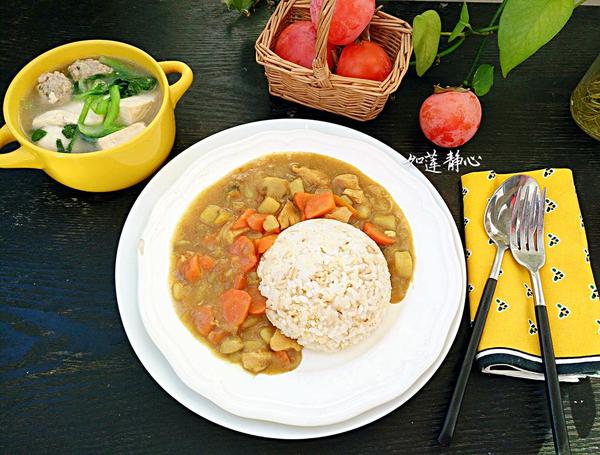 7,早餐也可以是米飯哦,雞肉胡蘿卜土豆咖哩飯+肉丸豆腐湯。一碗熱乎乎的肉丸湯吃得舒舒服服的上學(xué)去。