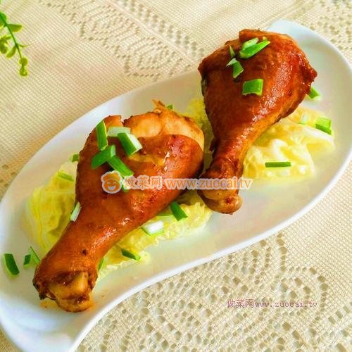 4.白菜葉墊底放雞腿,撒上蔥花碎即可食用。