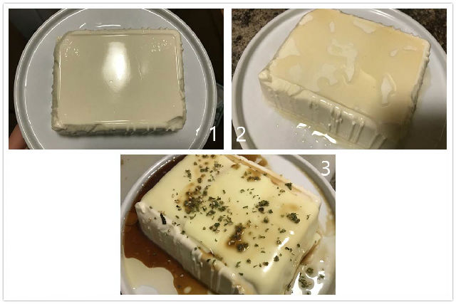 豆腐1塊,麻油 1湯匙,芝士 2片,醬油2湯匙,海苔碎 適量