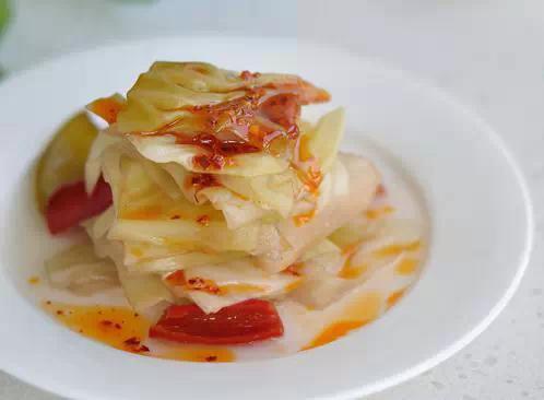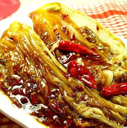 11.腌漬好的泡菜,澆上一點(diǎn)辣椒油吃起來(lái)味道酸辣開胃。