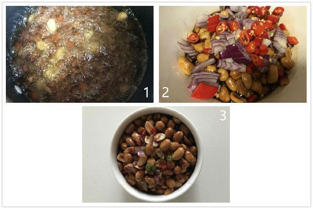 2. 將所有調(diào)料導(dǎo)入鍋中,煮開后放涼,倒入花生米。