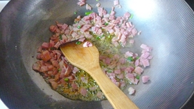 這個(gè)炒飯用的是荷爾美精選培根,煙熏香加韭菜的香味混合在一起,只需要簡單的調(diào)味,美味又開胃!