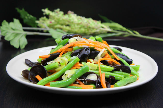 夏天吃涼拌吃,冬天吃熱拌菜。今天就來(lái)分享一道防霾食譜——木耳熱拌龍須豆。木耳營(yíng)養(yǎng)素含量及其豐富,尤其鈣、鐵等元素含鐵最高,補(bǔ)鐵效果也最好的食物。并且富含維生素維A,生素維B,維生素C和蛋白質(zhì)且熱量低,脂肪少。經(jīng)常食用有降血壓、益肝、清熱涼血、利尿、防止便秘等療效。極適宜霧霾天氣食用。龍須豆肉肥微甜,與木耳拌著吃非常好。