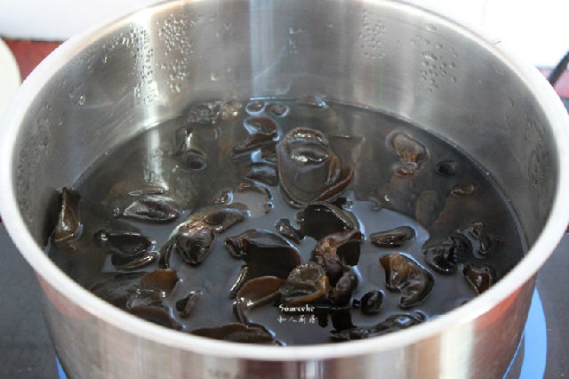 5.洗凈鍋,再次倒入清水煮沸,放入木耳,煮熟,撈出瀝干水;