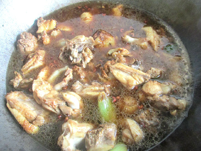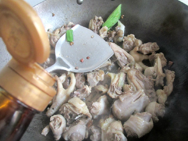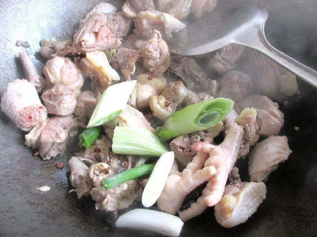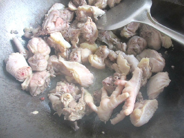 4,下入老雞煸炒,一定要多煸炒一會。