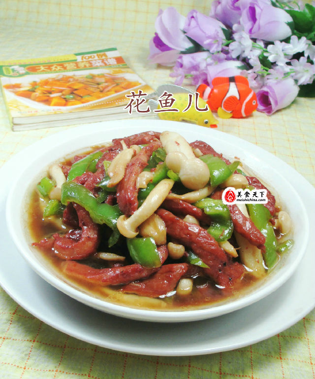食材:牛柳(已腌制)、白玉菇(已清洗)、尖椒(已清洗切開)