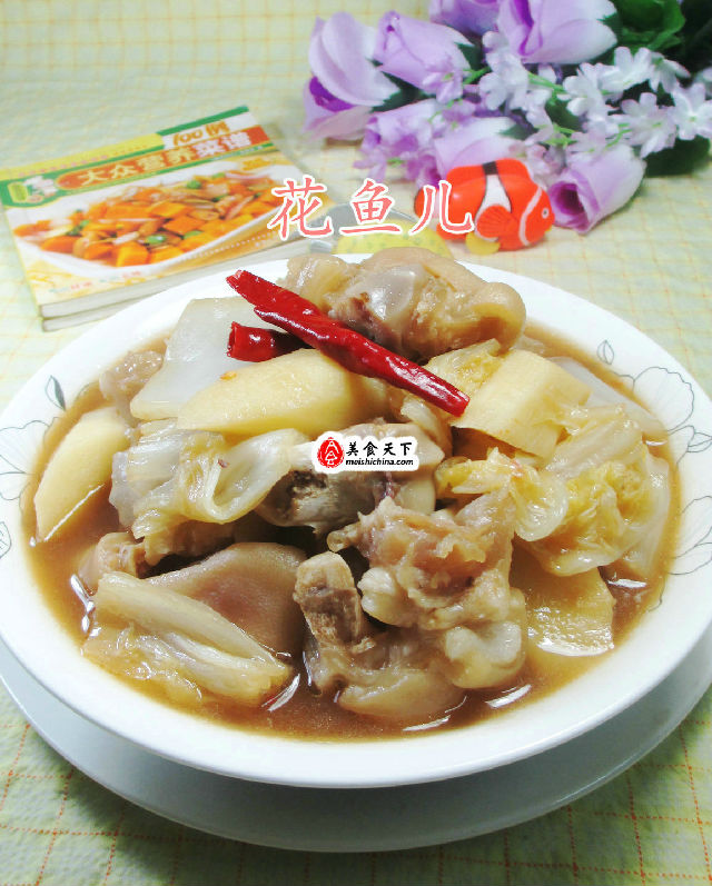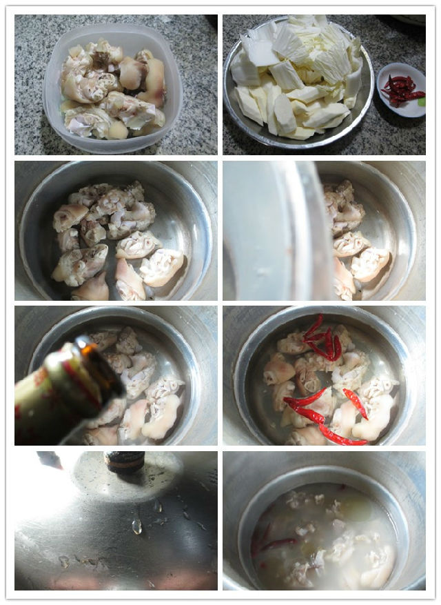 食材:豬蹄(已清洗焯水)、鐵棍山藥(已清洗去皮切開)、白菜(已清洗切開)、干辣椒