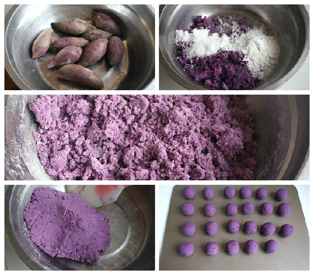 1. 紫薯洗凈、蒸熟;