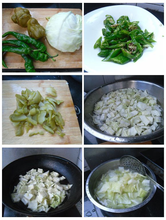 2、包心菜提前焯至熟透,可以加快菜肴的烹制過程,使尖辣椒、榨菜有脆嫩的口感。