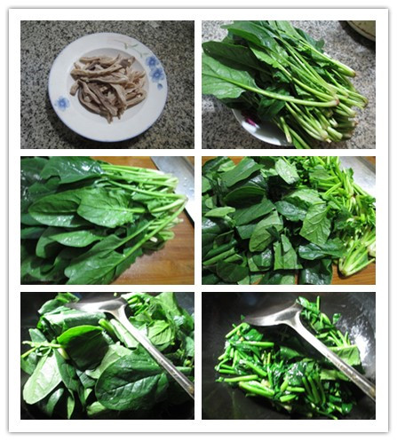(2)燒鍋倒油燒熱,下入切好的菠菜翻炒翻炒。
